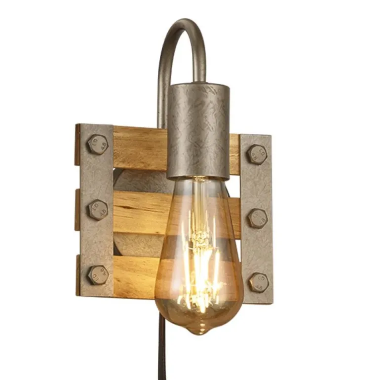 El aplique Khan tiene un diseño rústico, pero se puede utilizar en ambientes de estilo Vintage. Está fabricado en metal acabado níquel antiguo y madera de acabado natural. Es compatible con bombillas led (no incluidas), os recomendamos utilizar bombillas led de estilo Vintage en formato Edison. Khan está disponible en versión de 2L. Ideal para la iluminación en diferentes estancias, como por ejemplo, dormitorios, pasillos, subida de escaleras