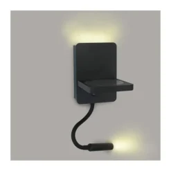 Práctico aplique de pared modelo Rob. Su diseño es moderno y esta realizado en aluminio en acabado negro mate. Incluye dos luces led independientes. Su luz en la parte superior tiene un consumo de 5w y emite una luz de ambiente en tonalidad cálida (3000k). Su brazo tiene un consumo de 3w y su tonalidad también es cálida. Además su brazo lector es flexible y nos permite orientar la luz hacia donde necesitemos. Lleva integrado un puerto USB. Y en su repisa podremos cargar nuestro teléfono móvil ya que lleva integrado un cargador Wireless (solo móviles compatibles). Podrás cargarlo independientemente de la luz. Disponible diferentes versiones.