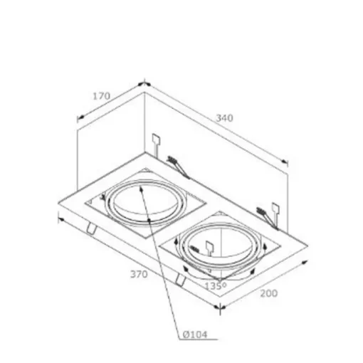 Empotrable Cardan 2 luces. Está realizado en acero acabado negro mate. Compatible con bombillas led, formato QR111 casquillo GU10 (no incluidas). Sus aros son oscilantes, lo que nos permite orientar la luz hacia donde necesitemos. Su medida de corte es de 340mm x 170mm. Disponible en otros acabados y formatos.