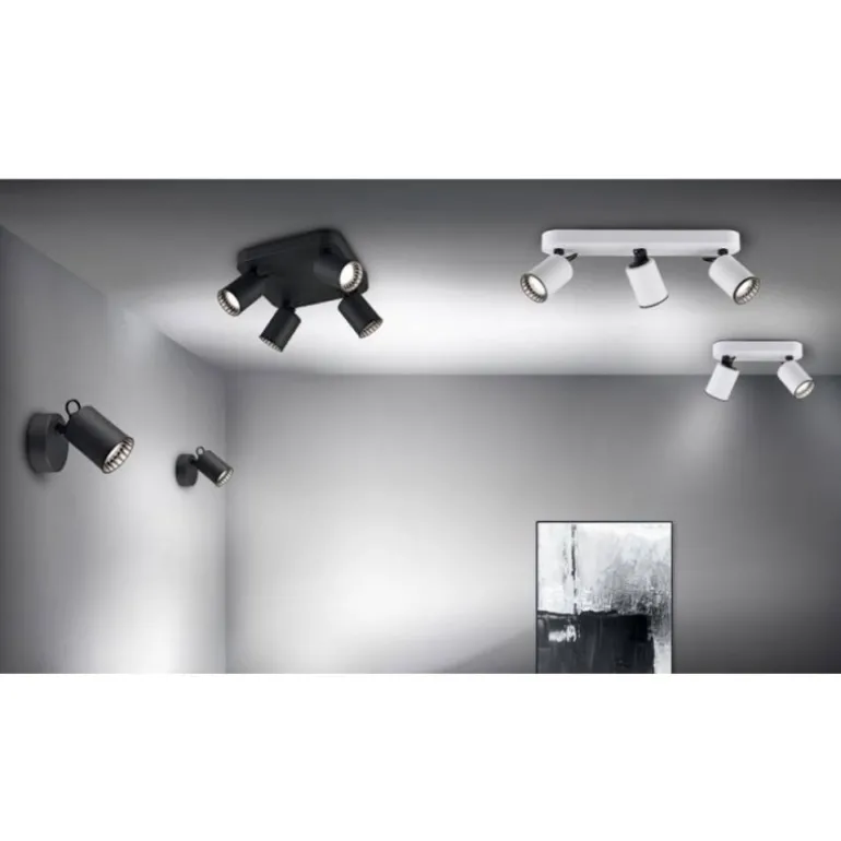 Pago es una colección de focos orientables en distintos formatos. Su estilo es moderno y de línea sencilla. Su estructura es de metal en acabado negro y difusor interior de plástico. Pago es compatible con bombillas led (no incluidas). Su cabezal es orientable y nos permite dirigir la luz hacia donde necesitemos. Es muy versátil ya que se puede instalar en techo o en pared. Ideal para iluminar cualquier tipo de estancia.