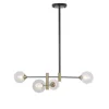 Lámpara de techo de estilo vintage. Su cuerpo es de metal en acabados negro y dorado mate. Sus tulipas son esferas de cristal transparente y en su interior otra tulipa más pequeña en acabado cristal opal. Compatible con bombillas led (no incluidas).Su diseño original nos permite utilizarla para iluminar distintas estancias como por ejemplo, un salón, un dormitorio e incluso para uso comercial. Disponible con las tulipas en opal blanco.