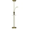 Lámpara de pie Alari en acabado metal cuero con una pequeña tulipa de cristal en la parte superior que permite que salga un haz de luz hacia abajo. Led integrado con un consumo en la parte superior de 18w en tonalidad 3000k (luz cálida) 2000lm y en el brazo lector 5w y tonalidad 4000k (luz neutra) 600lm.Regulable en intensidad.La lámpara de pie Alari cuero lleva incorporada una pequeña repisa de cristal transparente (18cm ancho y 28cm largo) e incluye un puerto USB para poder carga por ejemplo, móviles, tablet