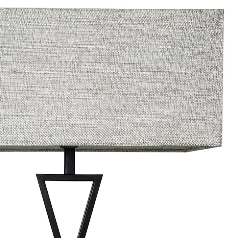 La sobremesa Gin cuenta con estructura realizada en metal negro con forma de «X», que aporta ligereza visual y una sensación de equilibrio. La forma geométrica es simple pero efectiva, destacando por su simplicidad y su estilo minimalista. La pantalla es rectangular y está hecha de un material textil de color gris claro, lo que contrasta de manera suave con la base negra, creando un equilibrio entre lo moderno y lo acogedor. La pantalla proporciona una luz difusa y cálida, ideal para crear un ambiente agradable en cualquier espacio. La base de la lámpara es cuadrada, también en color negro, lo que le da estabilidad y mantiene la coherencia con el diseño geométrico de la estructura. Gin es compatible con bombillas led (no incluida).