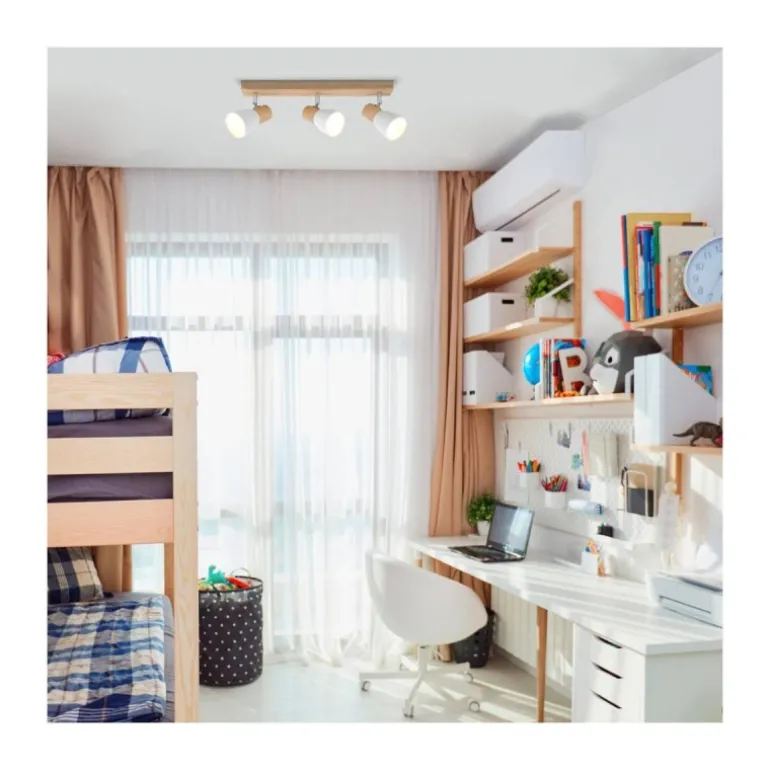 Lan es una colección de lámparas de acabado moderno que nos permite utilizarlas en ambientes de estilo nórdico y moderno. La regleta 3L Lan esta realizada en metal acabado blanco y madera en acabado natural. Es compatible con bombillas led (no incluidas). Sus focos son orientables, lo que nos permite orientar la luz hacia donde necesitemos. Gracias a su diseño podemos instalarla en el techo en pared. Ideal para iluminar dormitorios, pasillos, vestidores, cocinas