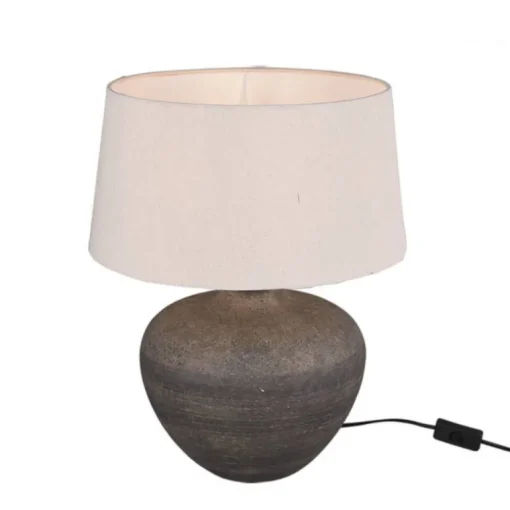 Sobremesa modelo Lou. Su diseño es rústico y su tamaño es ideal para utilizarla en cualquier estancia como sobremesa de dormitorio o como luz de ambiente en un rincón. Su estructura es de cerámica tono marrón. Su pantalla es de tela beige. Lou es compatible con bombillas led (no incluida), os recomendamos utilizar bombillas led de tono cálido.