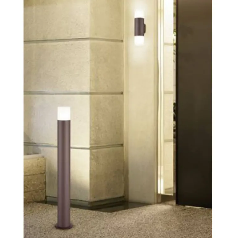 Baliza de exterior modelo Hoosic II. Su estructura es de aluminio fundido en acabado óxido y su difusor es de plástico blanco. Hoosic es compatible con bombillas led (no incluidas). Ideal para iluminar zonas de paso en exteriores o como luz de ambiente en un jardín. La serie Hoosic está disponible en diferentes versiones.